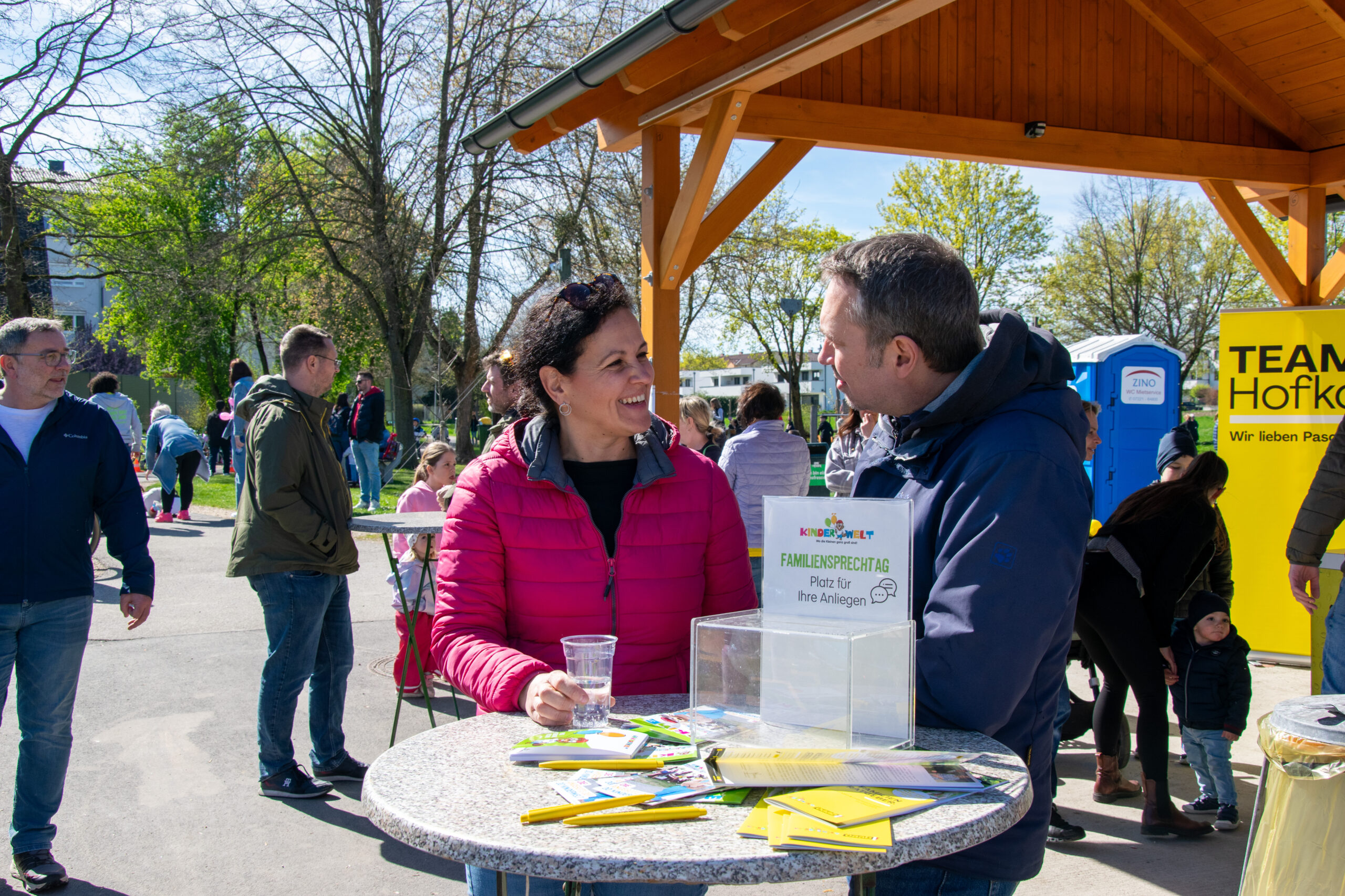 Auch der persönliche Austausch kam nicht zu kurz: Beim Familiensprechtag nutzten zahlreiche Besucherinnen und Besucher die Gelegenheit, mit Bürgermeister Markus Hofko ins Gespräch zu kommen und ihre Anliegen einzubringen.