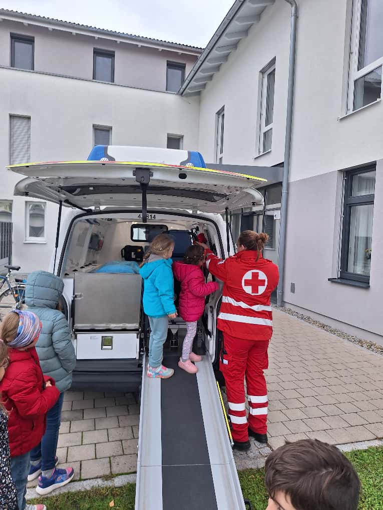 Die kleinen Nachwuchs-HelferInnen übten mit großem Eifer, wie man in Notfällen richtig reagiert: vom Notruf bis zur stabilen Seitenlage. Das Highlight des Tages war zweifellos das Rettungsauto, das nicht nur von außen bestaunt, sondern auch von innen erkundet werden durfte.