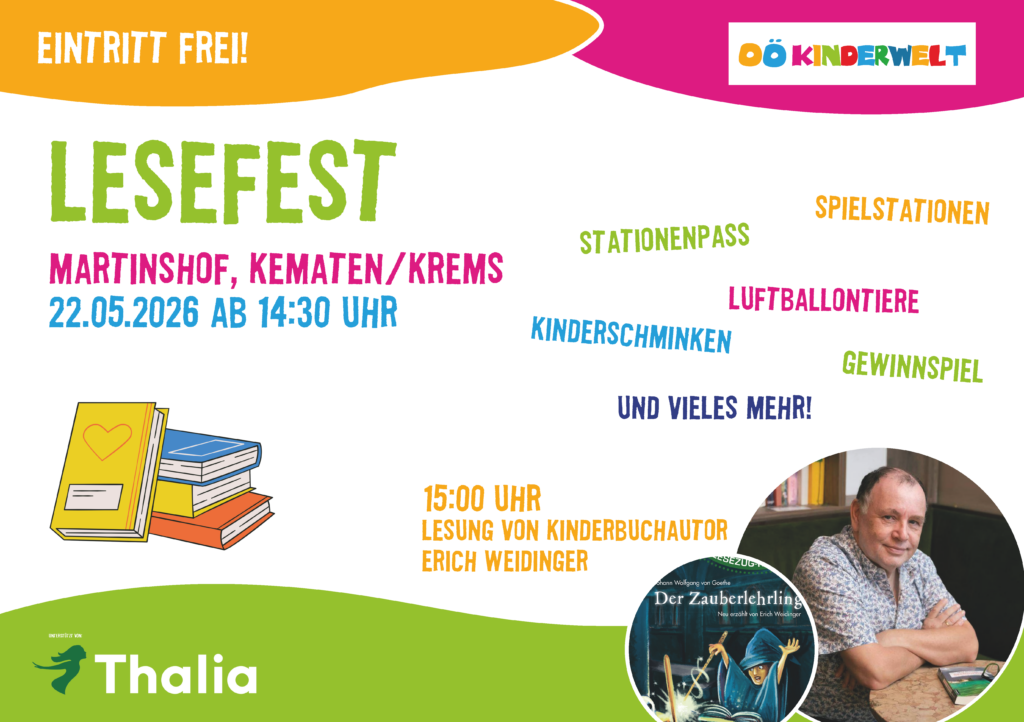 Am 22.05.2026 ab 15:00 Uhr Lesefest in Kematen/Krems