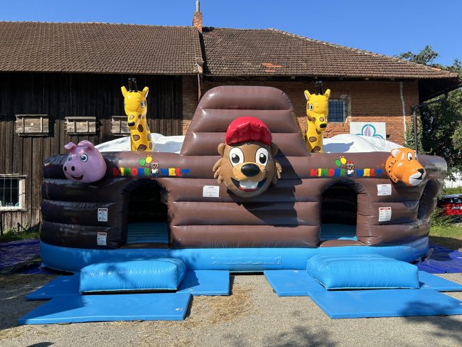 Große Hüpfburg ideal für Veranstaltungen jeder Art! Vorraussetzungen: 2 Betreuer/innen Stromkreis 230 Volt (2 KW), 16 A trockene, ebene Fläche von 10 x 6 Metern mind. 4 m Höhe Beschreibung: Die Hüpfburg “Arche Noah” eignet sich perfekt für größere Veranstaltungen, da bis zu 10 Kinder gleichzeitig die Hüpfburg betreten dürfen. Kinder werden eingeladen sich auszutoben…